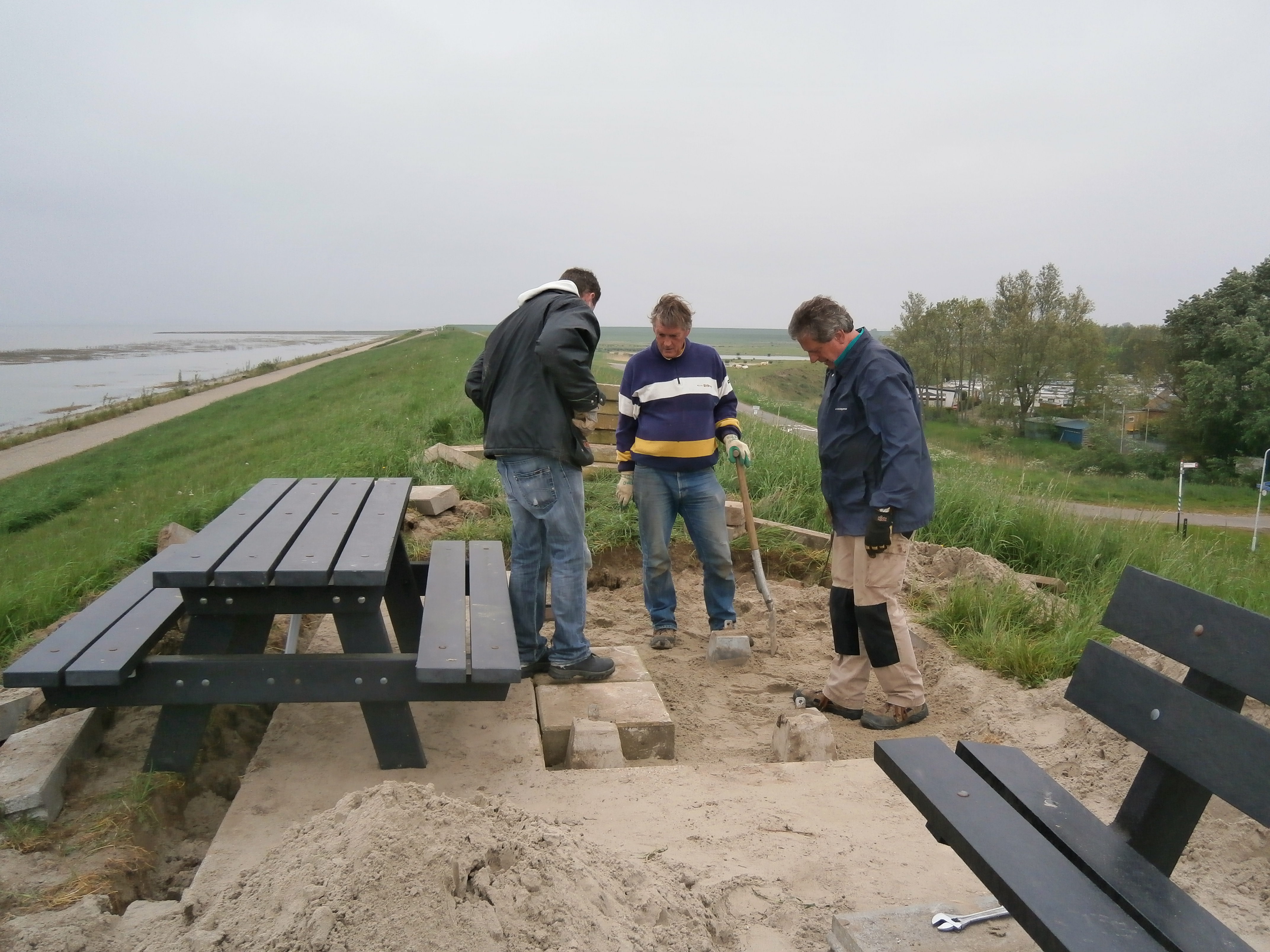Met als doel om langs de Westerschelde (dit keer op de Knuitershoek) een rustplek met drie bankjes en een picnic-tafel opnieuw in te richten. Meer dan 10 mensen hebben zich deze dag ingezet om bankjes te schilderen, bakstenen te ruimen en opnieuw te bestraten. Het Waterschap Scheldestromen had ter plekke keurig de (ruim 100) voorgeschreven nieuwe stenen (van ongeveer 60 kilo per stuk) afgeleverd.